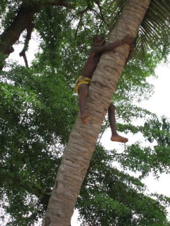There were several ways to get refreshment on the hot days on retreat. One could always grab the local bagged water, or one could ask the local boy to shinny up the coconut tree and get some fresh juice to drink!